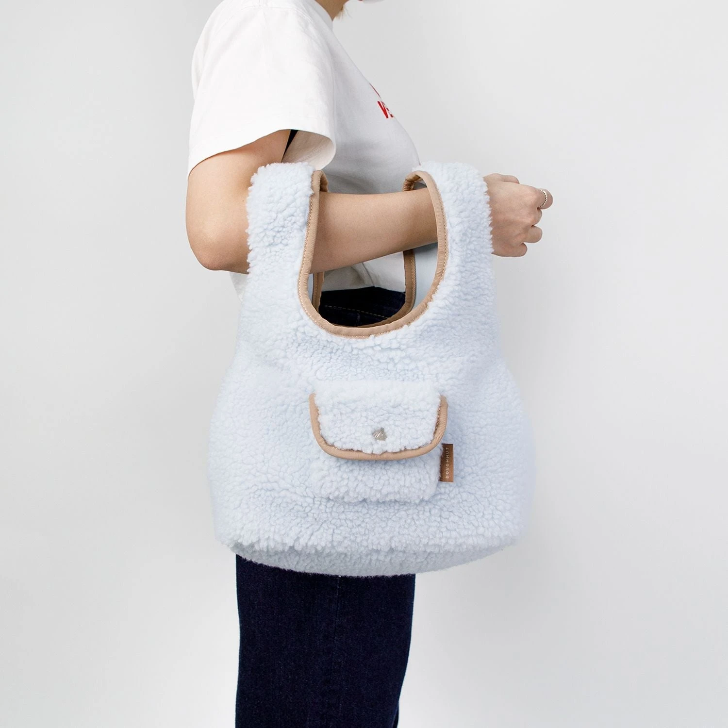 Punnet is a vest-like 2-way tote bag Punnet bag. Looking like a fluffy vest, you might just want to wear it. You can button up the sides to slim down the opening for more security. Putting one handle into another you can get a different look out of Punnet. Have a warm and fuzzy shopping spree with Punnet.