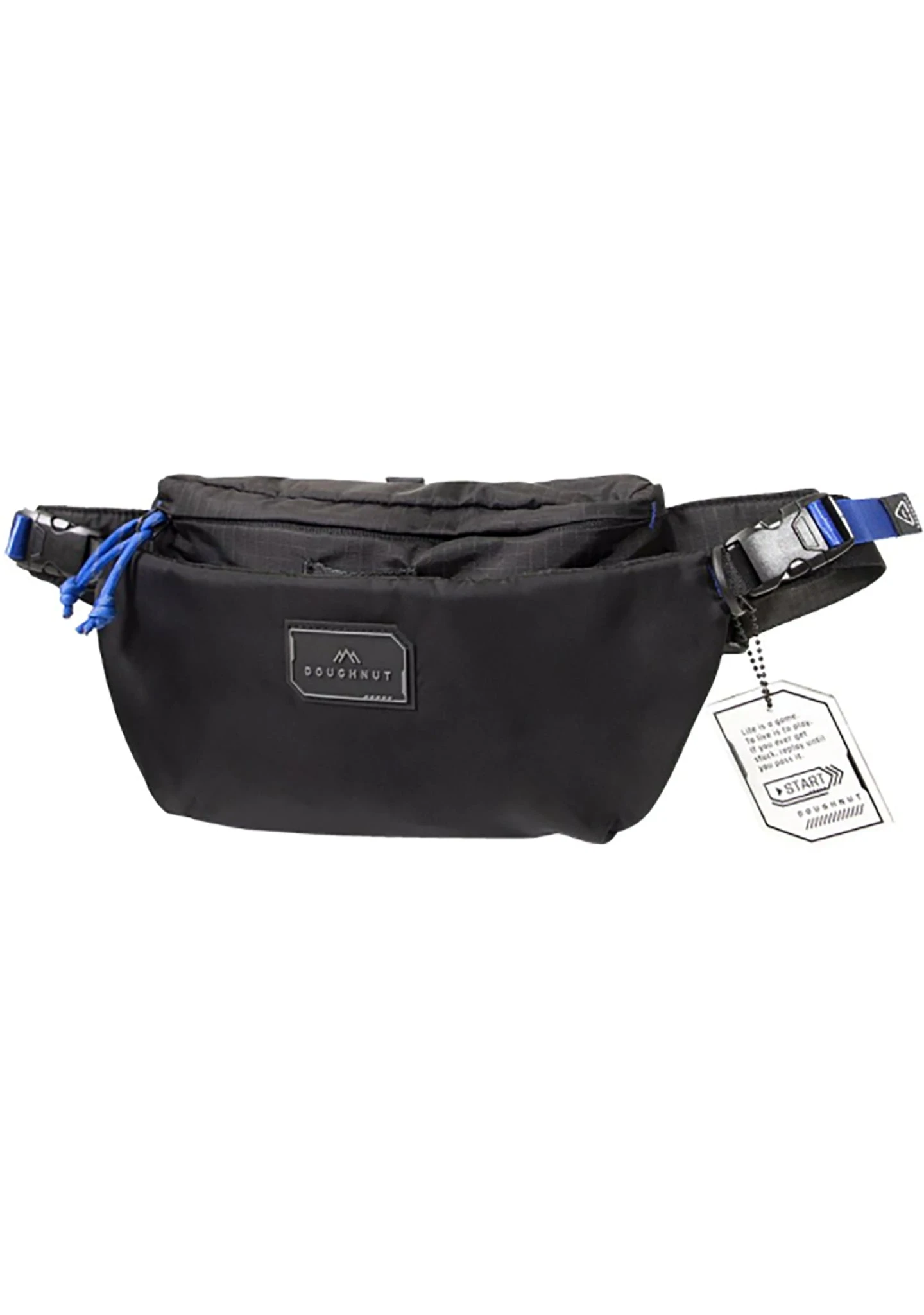 Your HP will never go down with the Gamescape Series Dagger Fanny Pack in Black from Doughnut Official. This futuristic festival fanny pack features a black water-resistant exterior with a zippered main compartment, snap button flap front pockets, and adjustable belt strap. #godmode