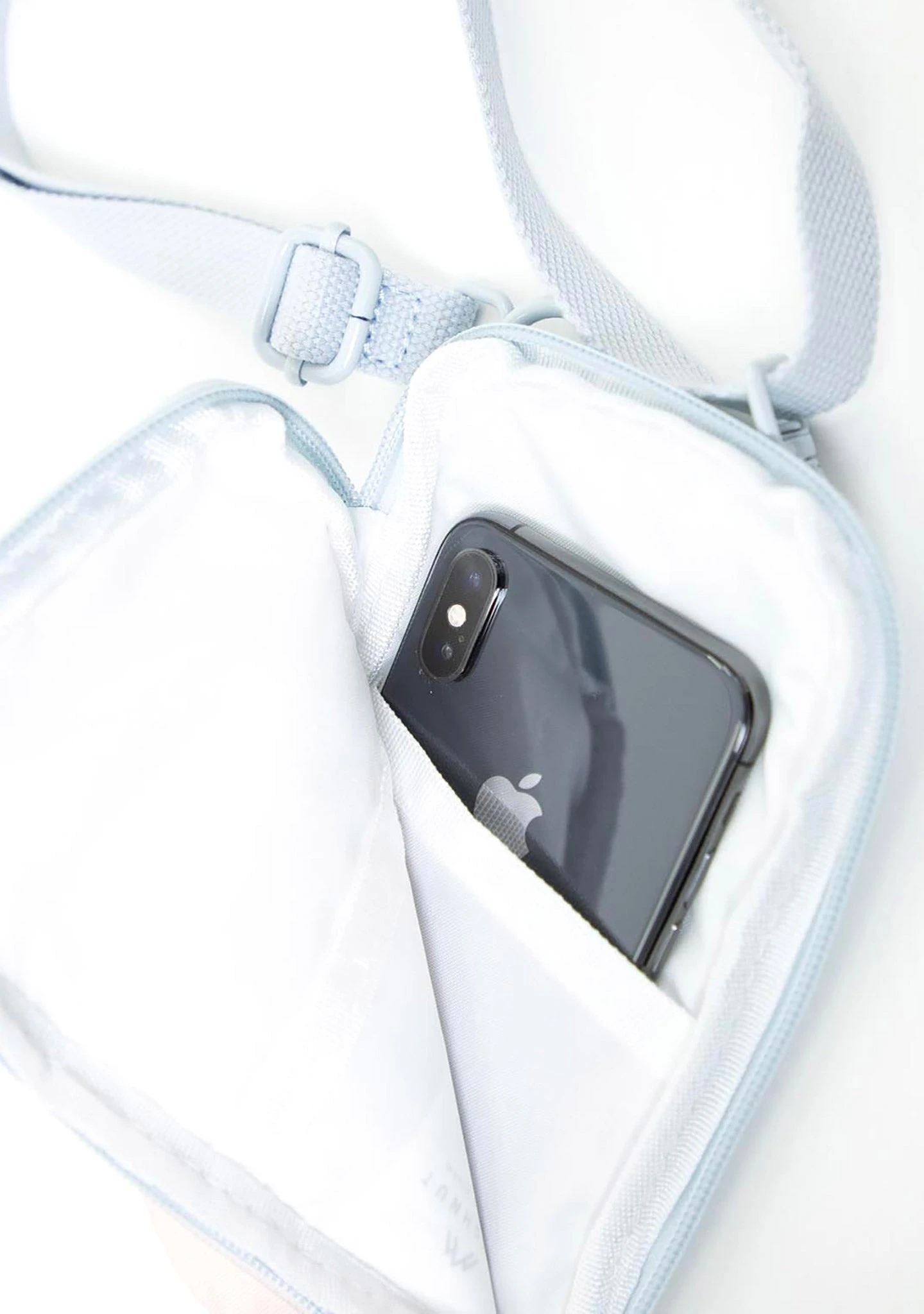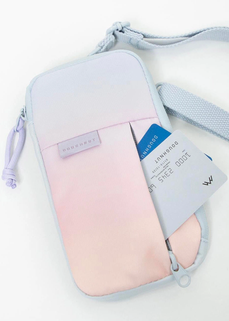 Hangover part 3, anyone? Well, worry-free when partying in the Sky Series Gleam Phone Bag from Doughnut Officials. This party-ready rave crossbody bags features pastel blue ombre base on water-resistant material with hidden zippered slip pocket in the front, rose gold hardware, detachable adjustable shoulder strap, fully lined interior with inner pocket, and secure zipper closure. Be creative and wear it as a sling across the chest, a belt bag at the waist, or simply wear it as a regular crossbody. Now, party til’you drop. Eh!